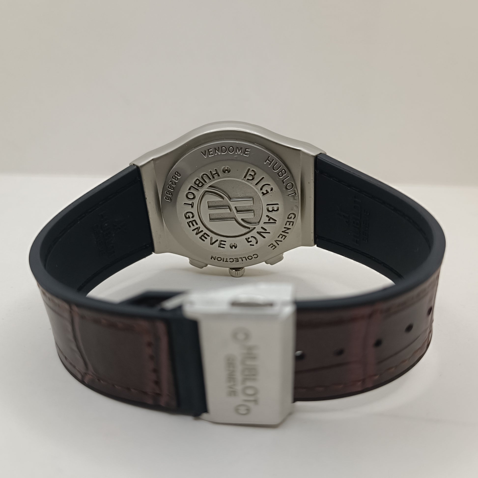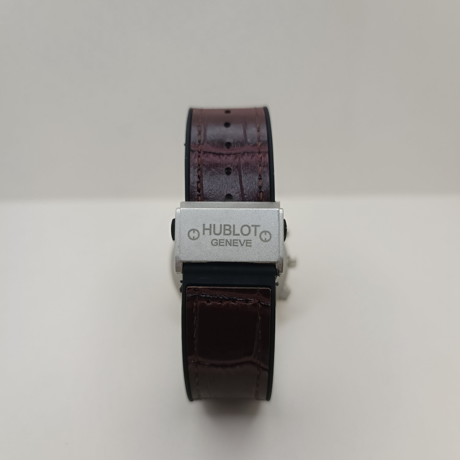 The matte silver dial adds a sleek, contemporary touch, while the clear date window ensures practicality at a glance. Engineered with Hublot’s signature Master Lock system, this timepiece offers enhanced security and confidence wherever your day takes you.
